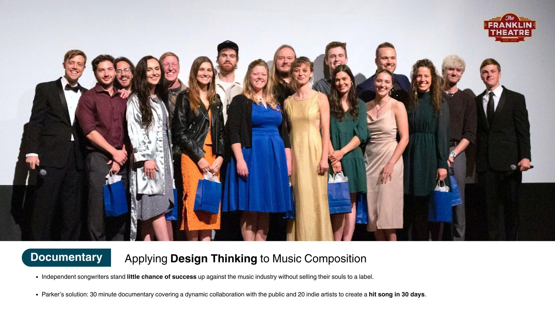 Experience their journey through this insane experiment applying design thinking to music composition. An industrial designer, a music producer, and 20 Nashville artists team up to create a viral pop song in 30 days by using the design process for music composition.